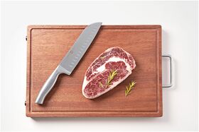 Имеется прочная стальная ручка, при помощи которой доску удобно фиксировать. Доска HU0250 станет незаменимым помощником на кухне.
