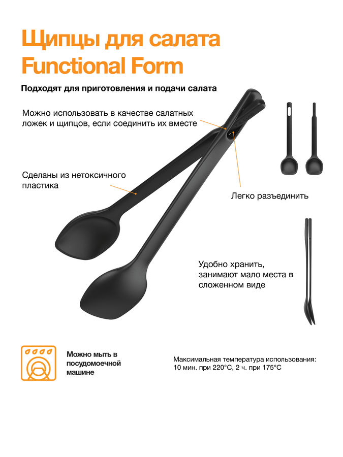 Идеально подходят для приготовления и подачи салата. Могут использоваться как салатные ложки, так и щипцы, если соединить их вместе, и также просто их разъединить при необходимости.