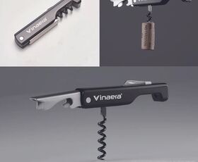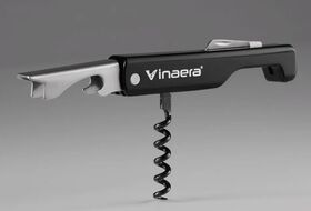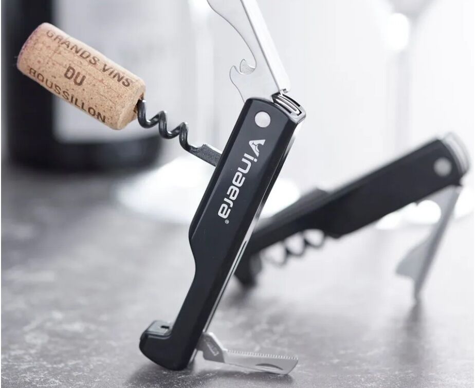 Совмещает в себе несколько функций нож для фольги, штопор, открывалка для бутылок