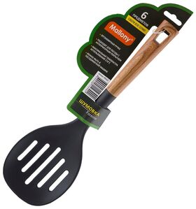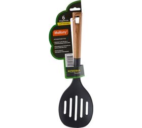 Шумовка Mallony FORESTA из нейлона, с пластиковой ручкой, дизайн под дерево, 34x10,5 см 006462 предназначена для отделения жидкостей от продуктов.
