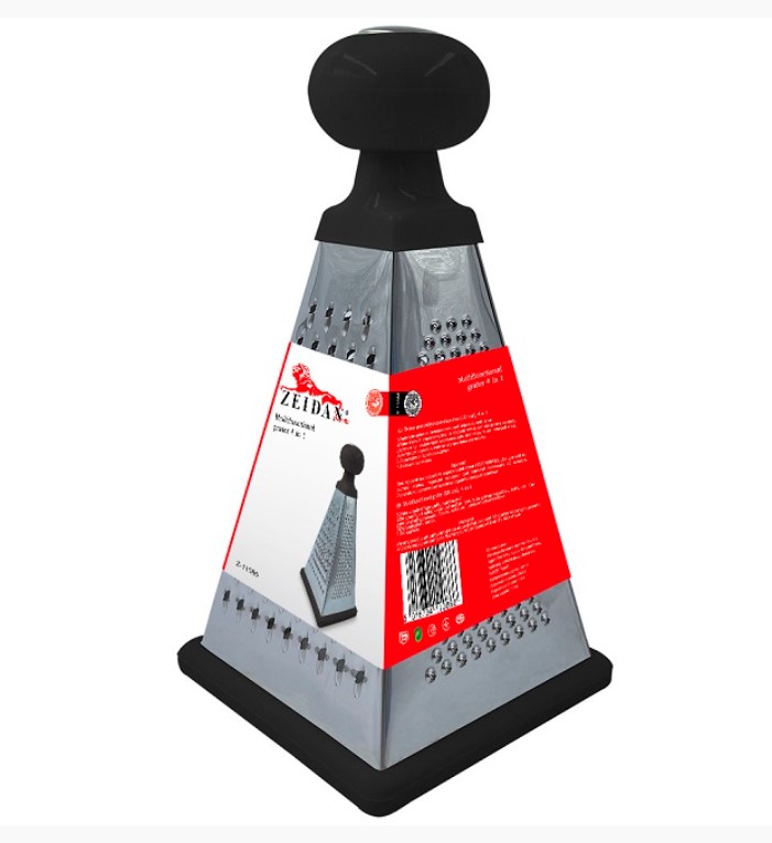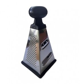 Терка с прорезиненным основанием имеет 4 стороны с разными формами ножей, что позволяет натирать четырьмя разными способами - от мелкой крошки и нежного пюре, до средней нарезки и крупной стружки.