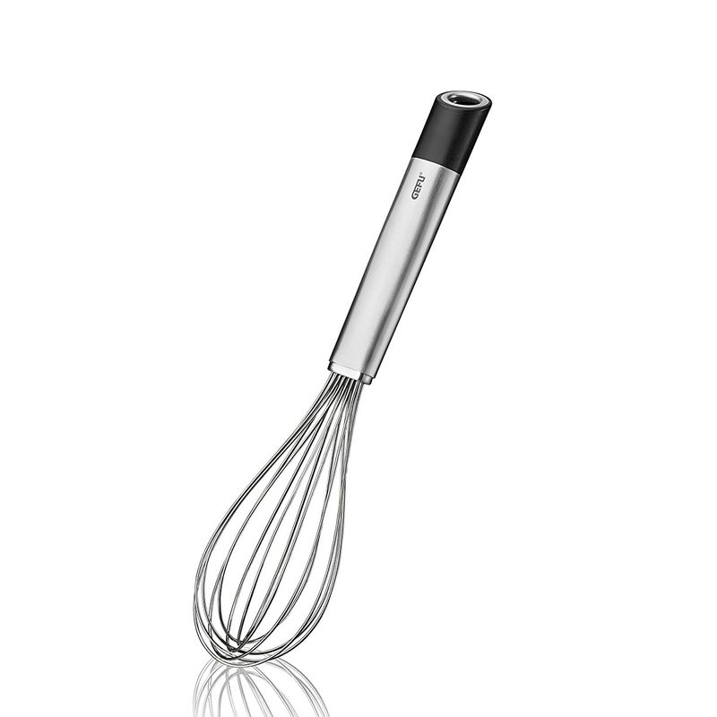 Прочные прутья венчика легко взбивают сливки, яичный белок, пудинги, соусы и прочие продукты в считанные минуты.