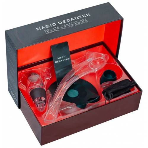 - устройство для аэрации вин в элегантном корпусе с комплектом аксессуаров;
