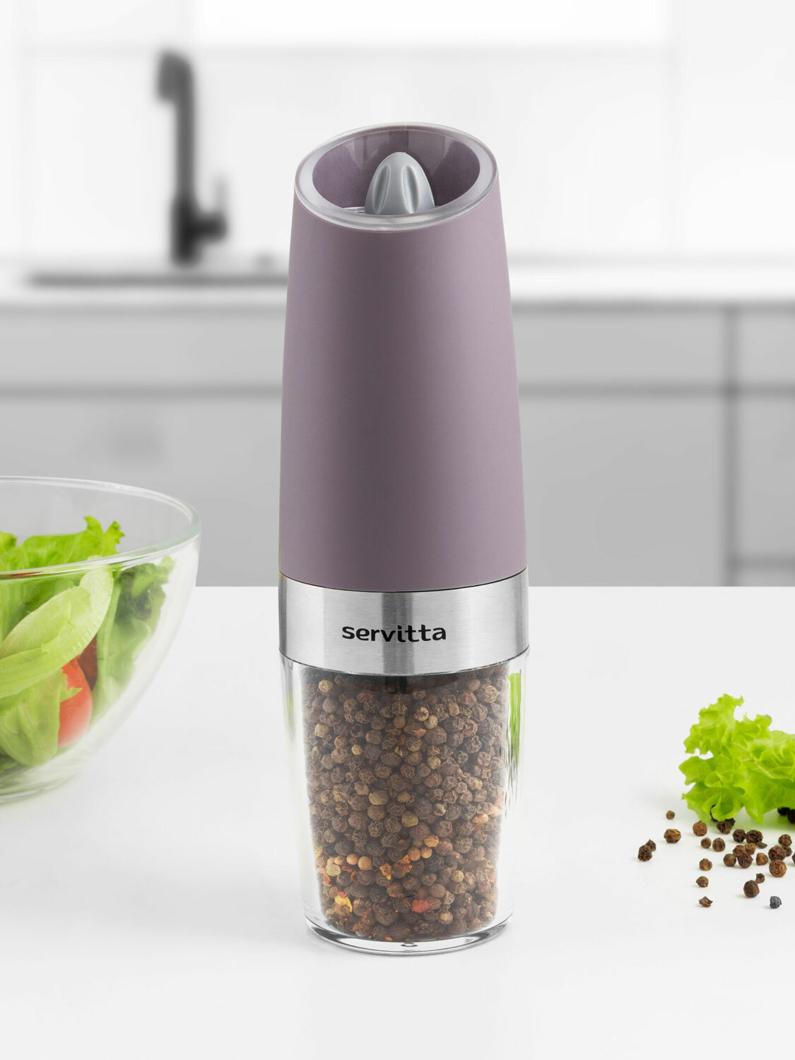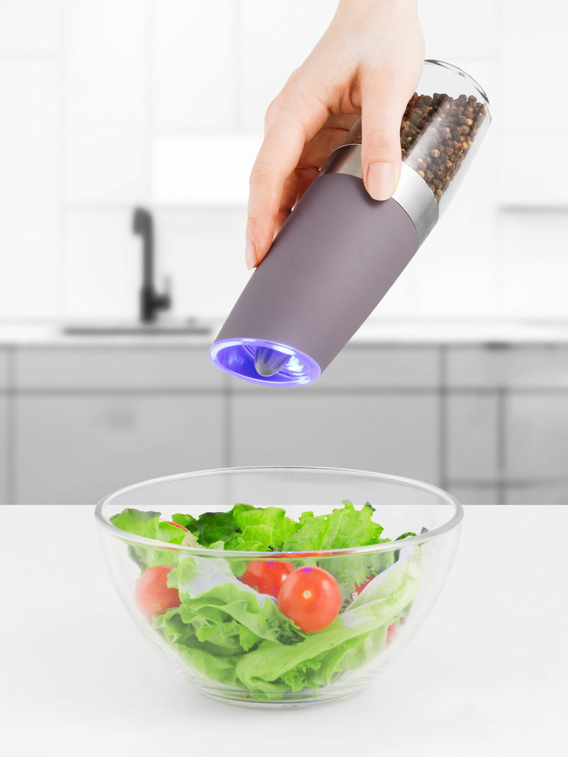LED подсветка автоматически активируется, когда мельница начинает работать, что позволяет лучше видеть сколько специй вы добавили в блюдо.