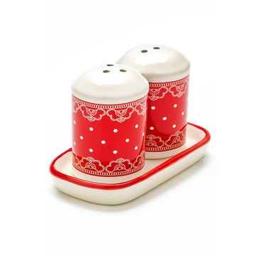 Набор для специй LORAINE состоит из солонки и перечницы на подставке. Предметы набора выполнены из прочной доломитовой БИО и ЭКО керамики красного цвета в белый горошек. Дизайн, эстетичность и функциональность набора позволят ему стать достойным дополнением к кухонному инвентарю и украсить Ваш стол. Благодаря гладкой поверхности изделия легко и просто мыть.