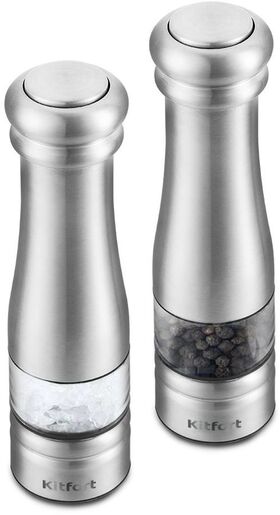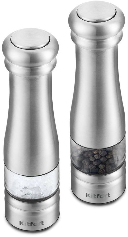 Kitfort KT-2030 измельчает перец-горошек, соль и другие специи. Нет нужды молоть специи впрок. Мельница одновременно мелет и дозирует. Поместите её над блюдом и просто нажмите кнопку.