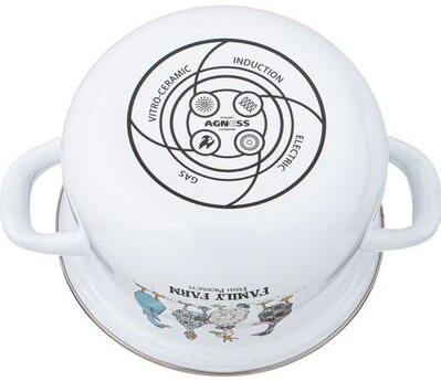 • Посуда проходит 3 этапа обжига, эта технология позволяет сохранить яркость расцветок деколи, а также придает прочность эмалированной посуде
