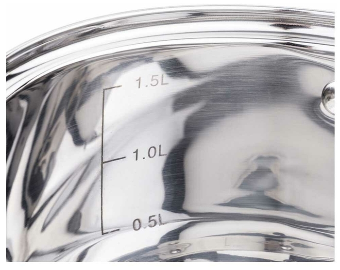 совместимость с индукцией мытье в посудомойке отверстие для пара многослойное дно шкала литража |