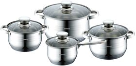 Комплектация:ковш со стеклянной крышкой 16 см./1,9 л.; кастрюля со стеклянной крышкой 18 см./2,8 л.; кастрюля со стеклянной крышкой 20 см./3,6 л.; кастрюля со стеклянной крышкой 24 см./6,1 л