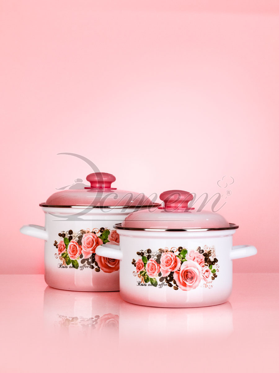 Набор посуды Эстет изготовлен из высококачественного стального проката и покрыта стеклокерамической эмалью. Внутри и снаружи - трехслойное глянцевое эмалированное покрытие. Эмалевое покрытие, являясь стекольной массой, не вызывает аллергию и надежно защищает пищу от контакта с металлом. Кроме того, такое покрытие долговечно, оно устойчиво к механическому воздействию, не царапается и не "сходит", а стальная основа практически не подвержена механической деформации, благодаря чему срок эксплуатации увеличивается. Крышка с эмалированным покрытием оснащена удобной ручкой. Она плотно прилегает к краю, сохраняя аромат блюд. Подходит для всех типов плит, включая индукционные. Можно мыть в посудомоечной машине.