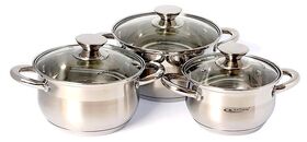 материал крышек: стекло; материал ручек: сталь; многослойное дно; диаметр/объем: 160 мм/1.5 л, 180 мм/2 л, 200 мм/3 л