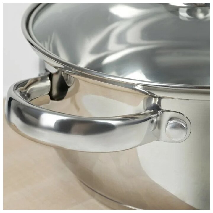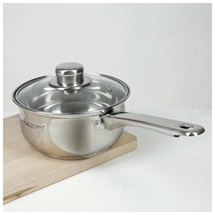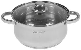 материал крышек: стекло; материал ручек: сталь; многослойное дно; диаметр ковша: 16 см; диаметр кастрюль: 18 см, 22 см