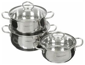 Комплектация кастрюли: 1.6 л, 2.2 л, 3.2 л; 3 крышки