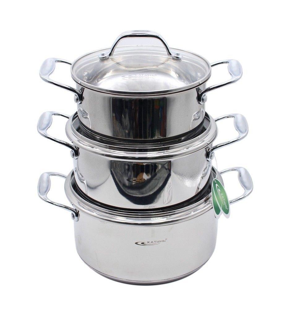 Комплектация кастрюли: 2.2 л, 3.2 л, 4.2 л; 3 крышки