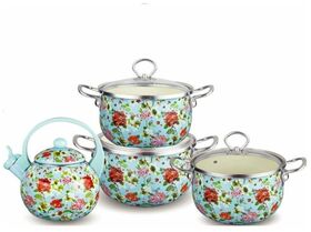 кастрюли: 2.3 л, 3 л, 6.8 л; 3 крышки; чайник со свистком: 2.5 л