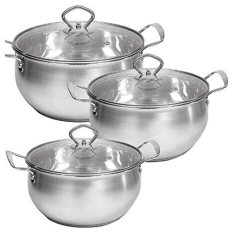 Объем кастрюль: 1,7 л; 2,3 л; 3,0 л.