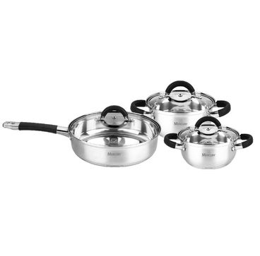 | Состав набора | кастрюля с крышкой 2,0 л (18х9 см) кастрюля с крышкой 1,4 л (16х8 см) сковорода с крышкой 2,6 л (24х6,5 см) |