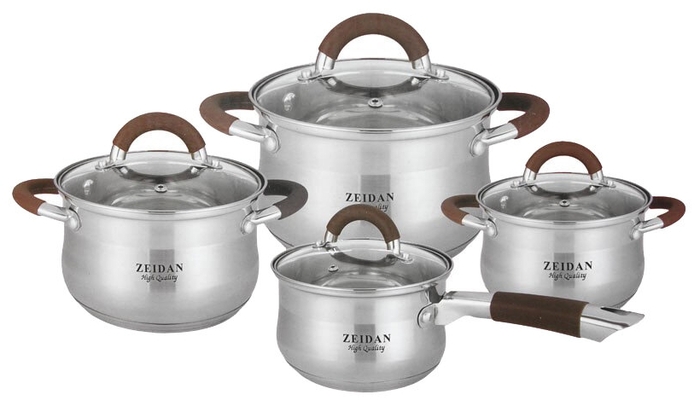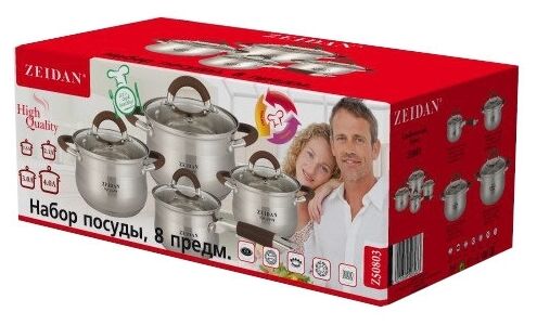 - кастрюли: 2.1 л, 3 л, 4 л; ковш: 1.5 л; 4 крышки