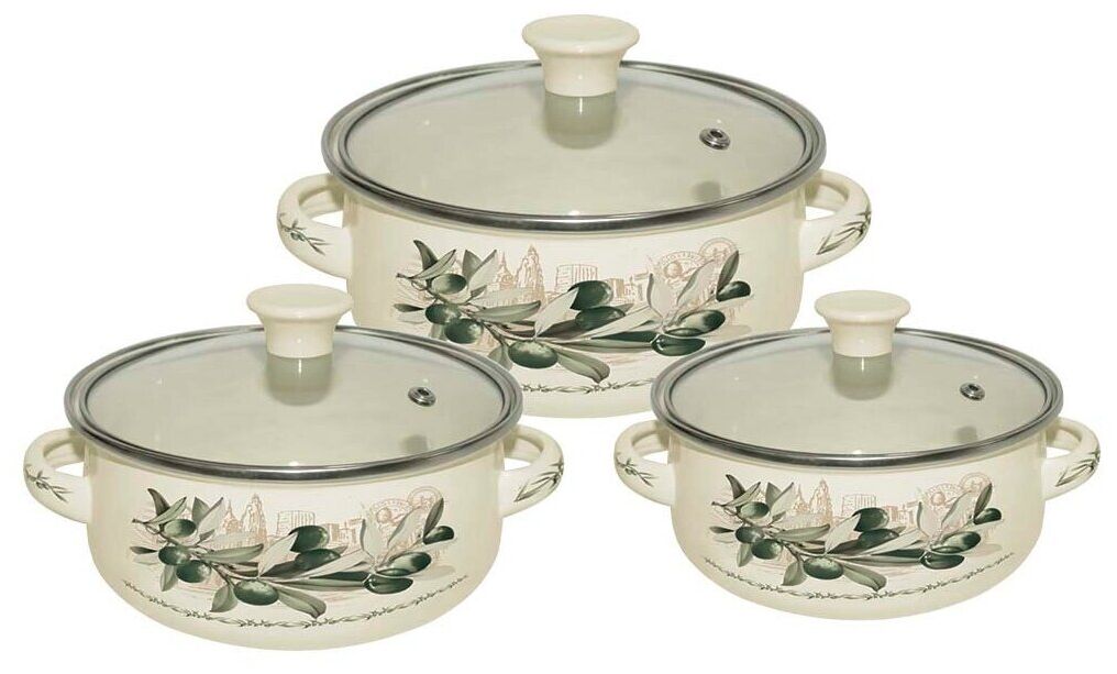3 кастрюли: 0.5 л, 0.8 л, 1.2 л; 3 крышки