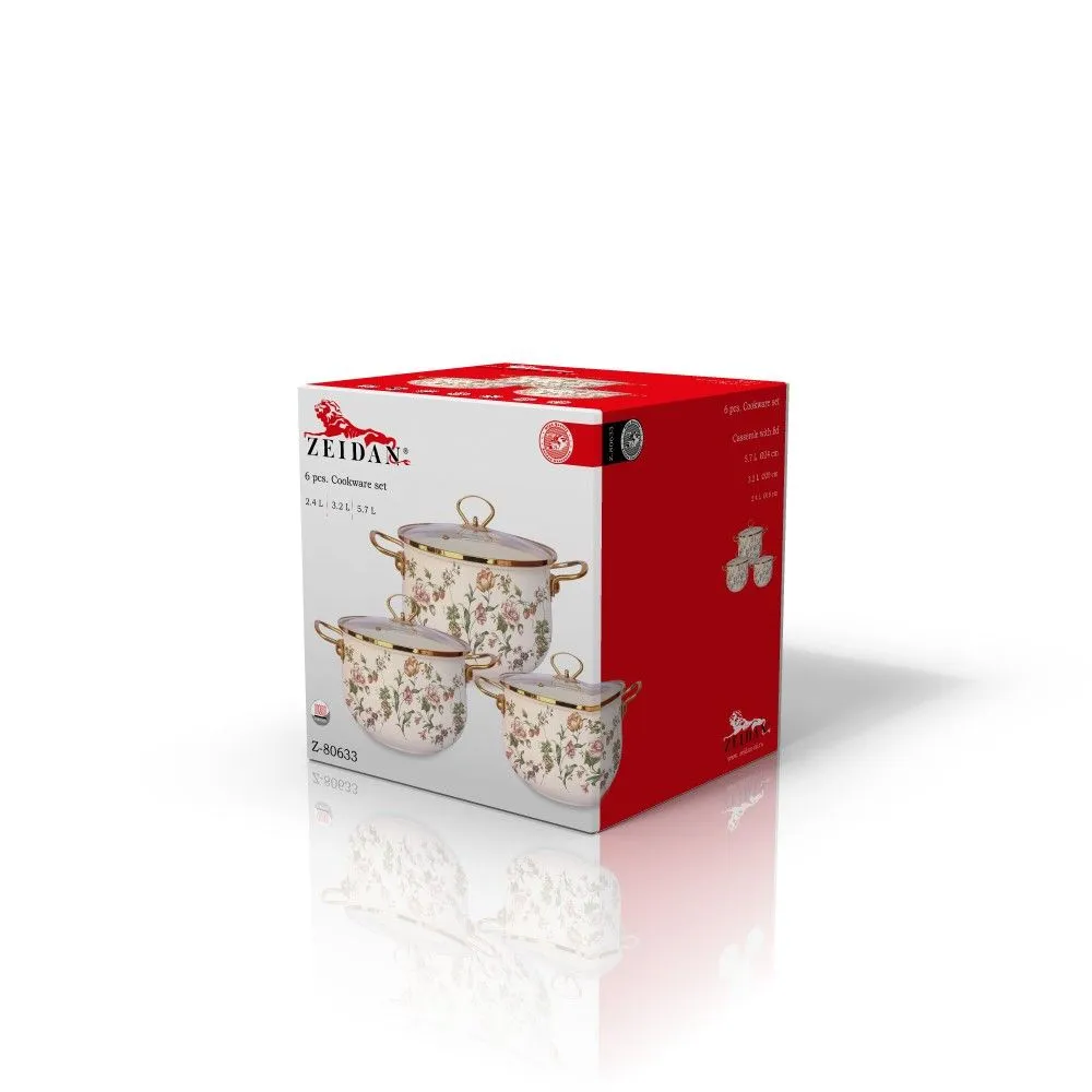 Набор кастрюль из трёх кастрюль с крышками— идеальное решение для вашей кухни! В комплект входят кастрюли объёмом 2,4 (d18 см), 3,2 (d20 см) и 5,7 (d24 см) литров с крышками. Благодаря внутреннему и внешнему трёхслойному эмалированному покрытию, эти кастрюли прослужат вам долгое время. Изготовлены из высококачественной углеродистой стали, они обеспечивают равномерное распределение тепла и быстрый нагрев. Ручки на корпусе и крышке выполнены в элегантном золотистом цвете, что придаёт посуде стильный вид.