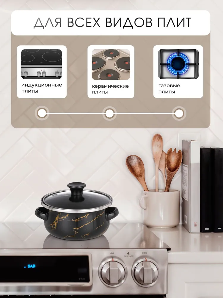 Совместимые плиты: Для индукционных плит, Для газовых плит, Для стеклокерамических плит, Для электрических плит, Для галогеновых конфорокОтзывы не найдены