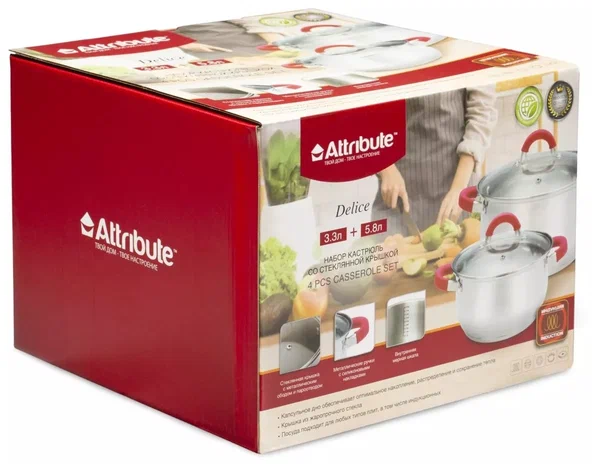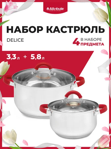 Комплектация: 2 кастрюли 3,3 и 5,8 л с крышками
