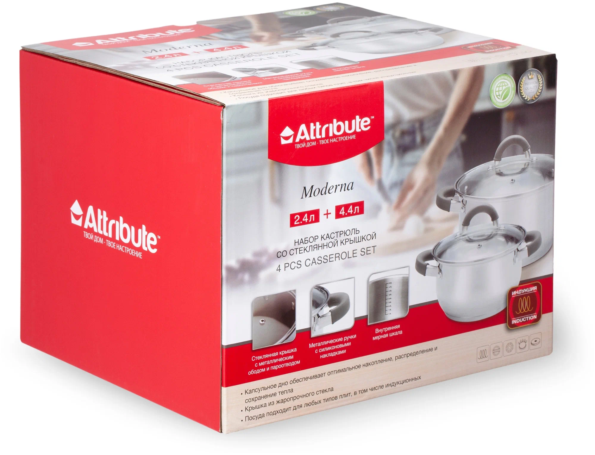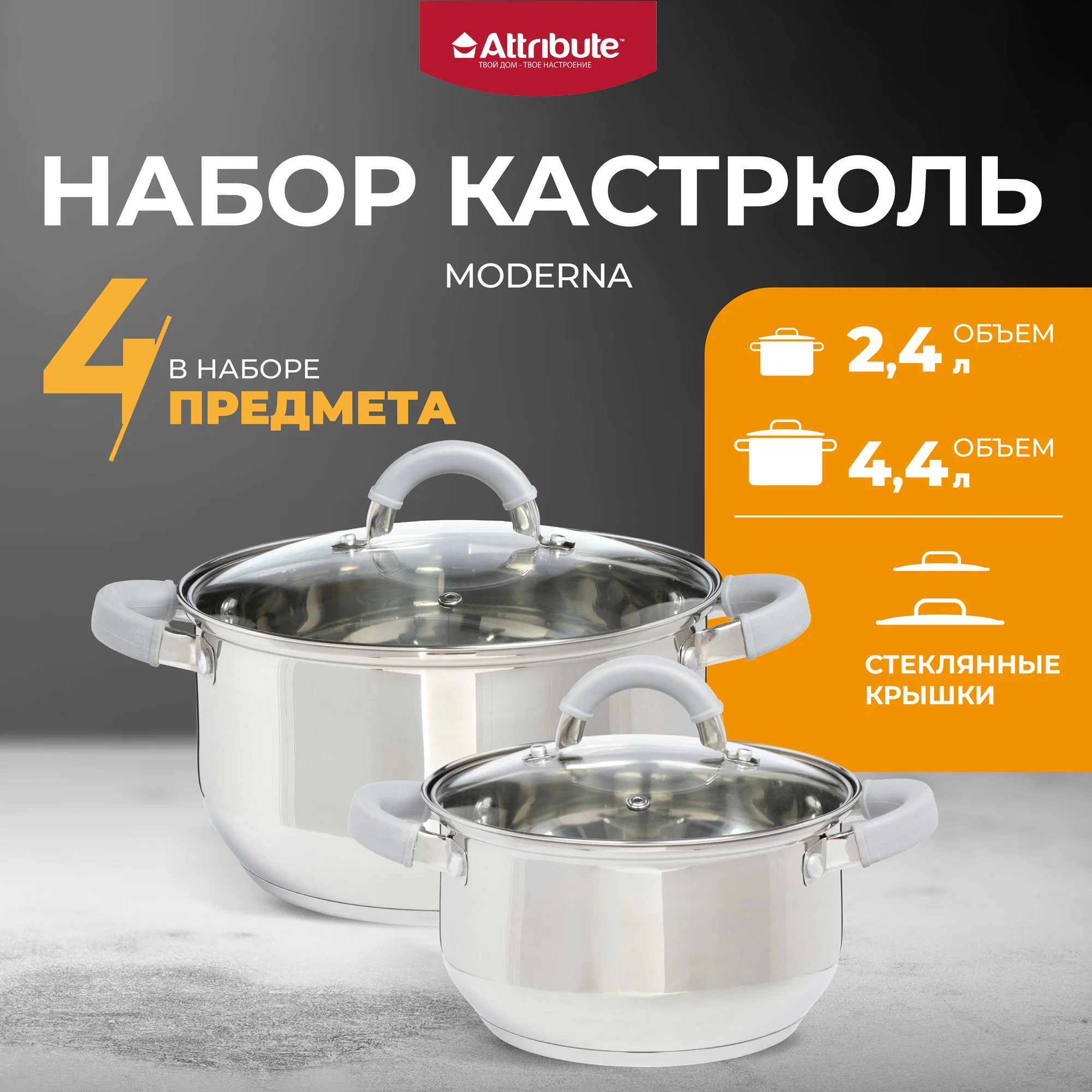2 кастрюли 2.4 и 4.4 л с крышками