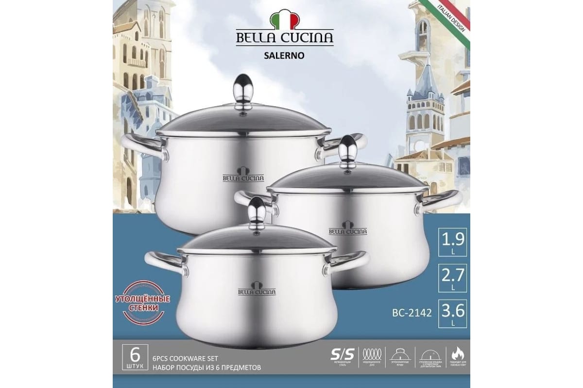 Технические характеристики набора посуды Bella Cucina BC-2142 2142-BC