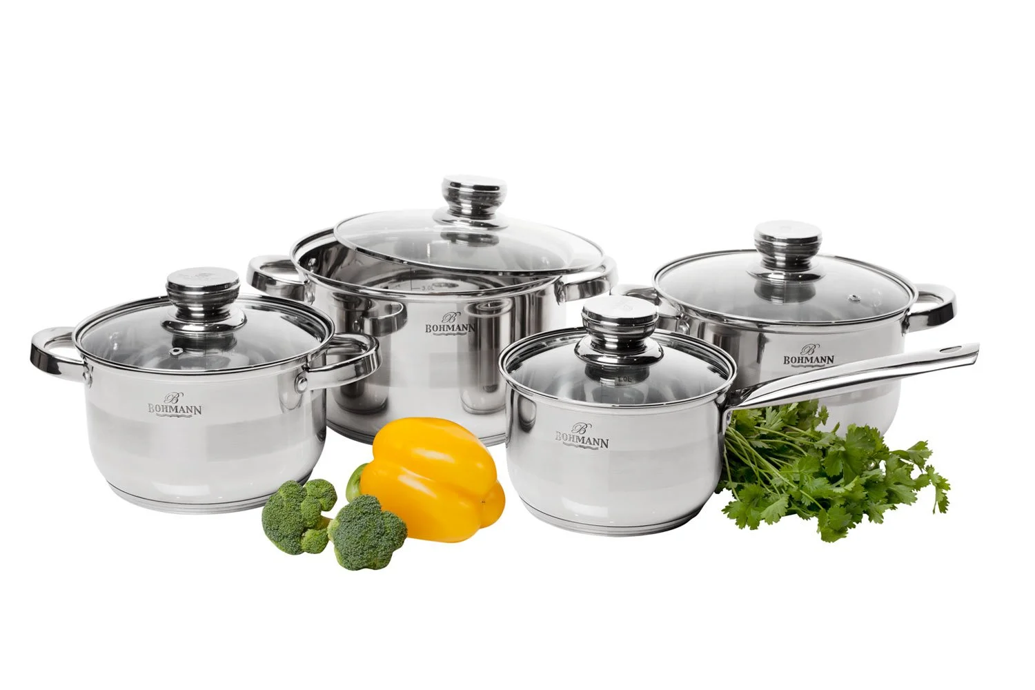 Кастрюля-3 шт, ковш-1 шт и крышка-4 шт