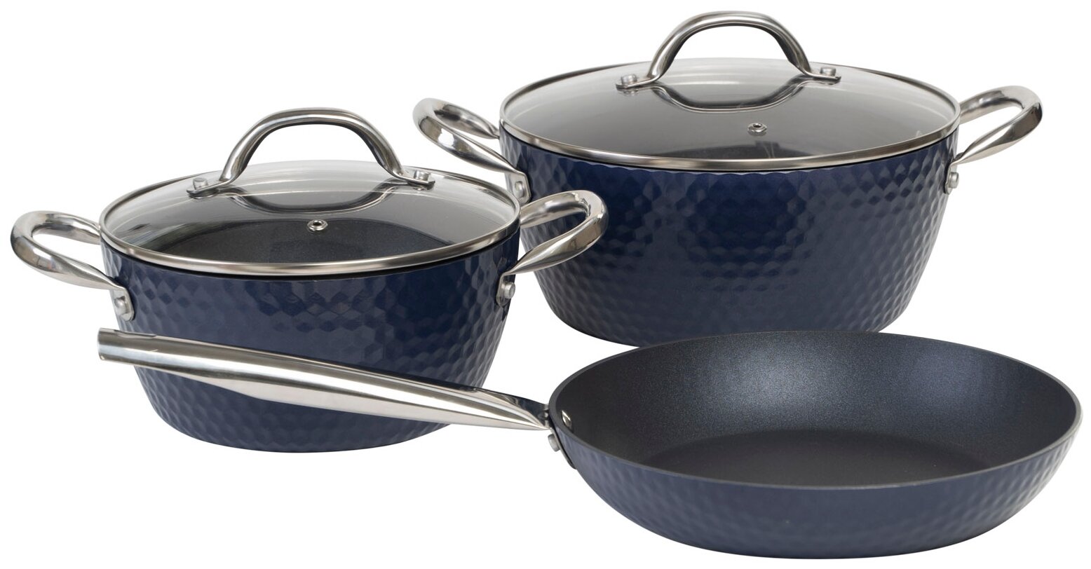 2 кастрюли: 2.46 л, 4.0 л; сковорода 24 см; 2 крышки