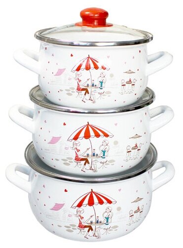 3 кастрюли: 2,1 л, 3,1 л, 4,0 л; 3 крышки