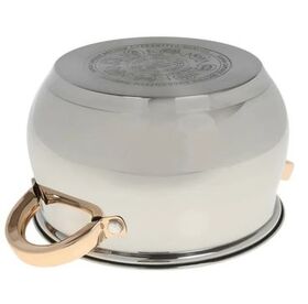 Набор посуды предусматривает наличие шести предметов – трех кастрюль и крышек, соответствующих их диаметру. Объем кастрюль очень удобен для средней семьи для ежедневного приготовления пищи: 2.1 л, 3 л и 4 л. Изготовленные из нержавеющей стали, изделия станут лучшими для своих владельцев, поскольку будут радовать не один год своим качественным исполнением. Кастрюли выполнены в серебристом цвете и дополнены золотистыми ручками, на которых акцентировано внимание.