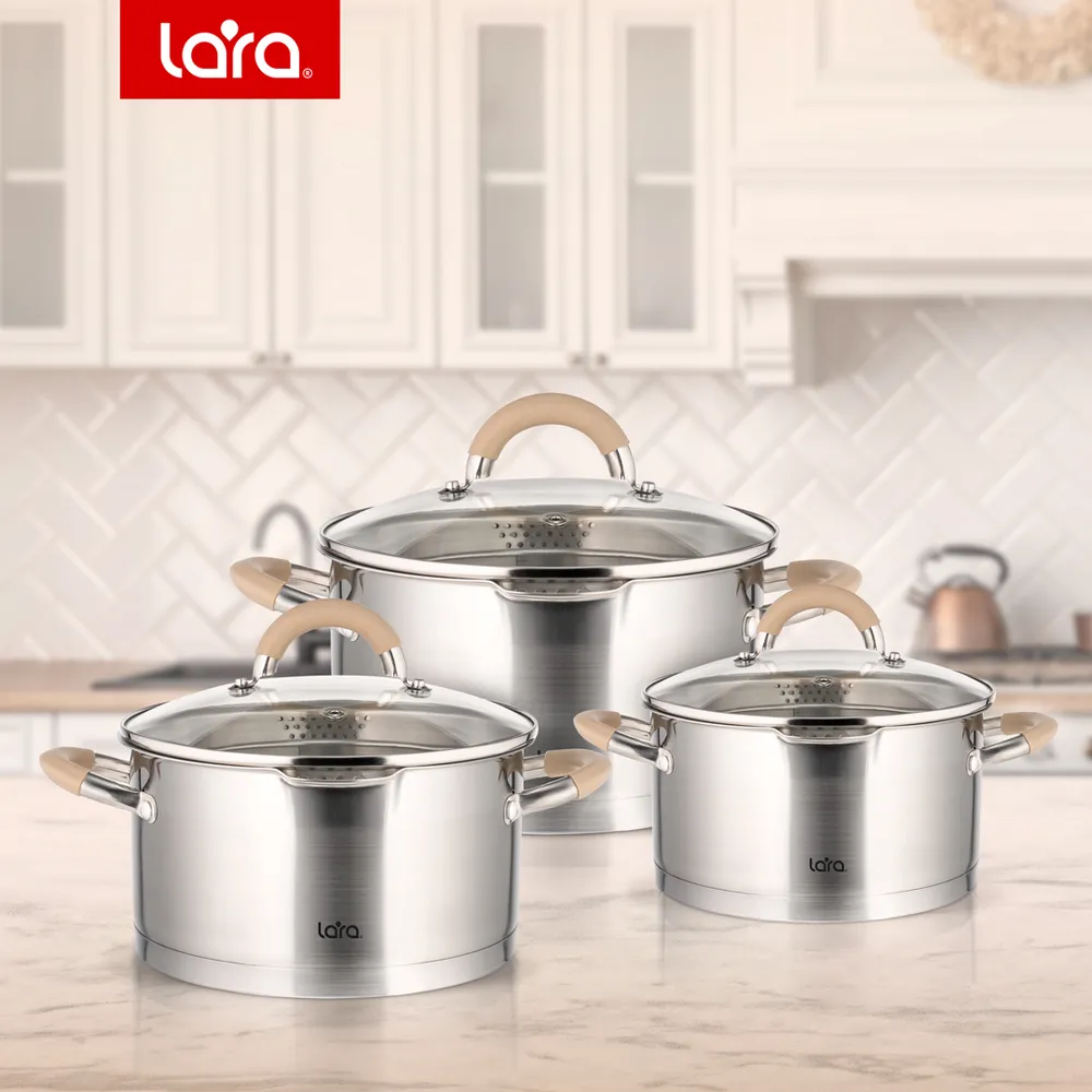 кастрюля 1.7 л, 3.1 л, 5.5 л, крышка - 3 шт.