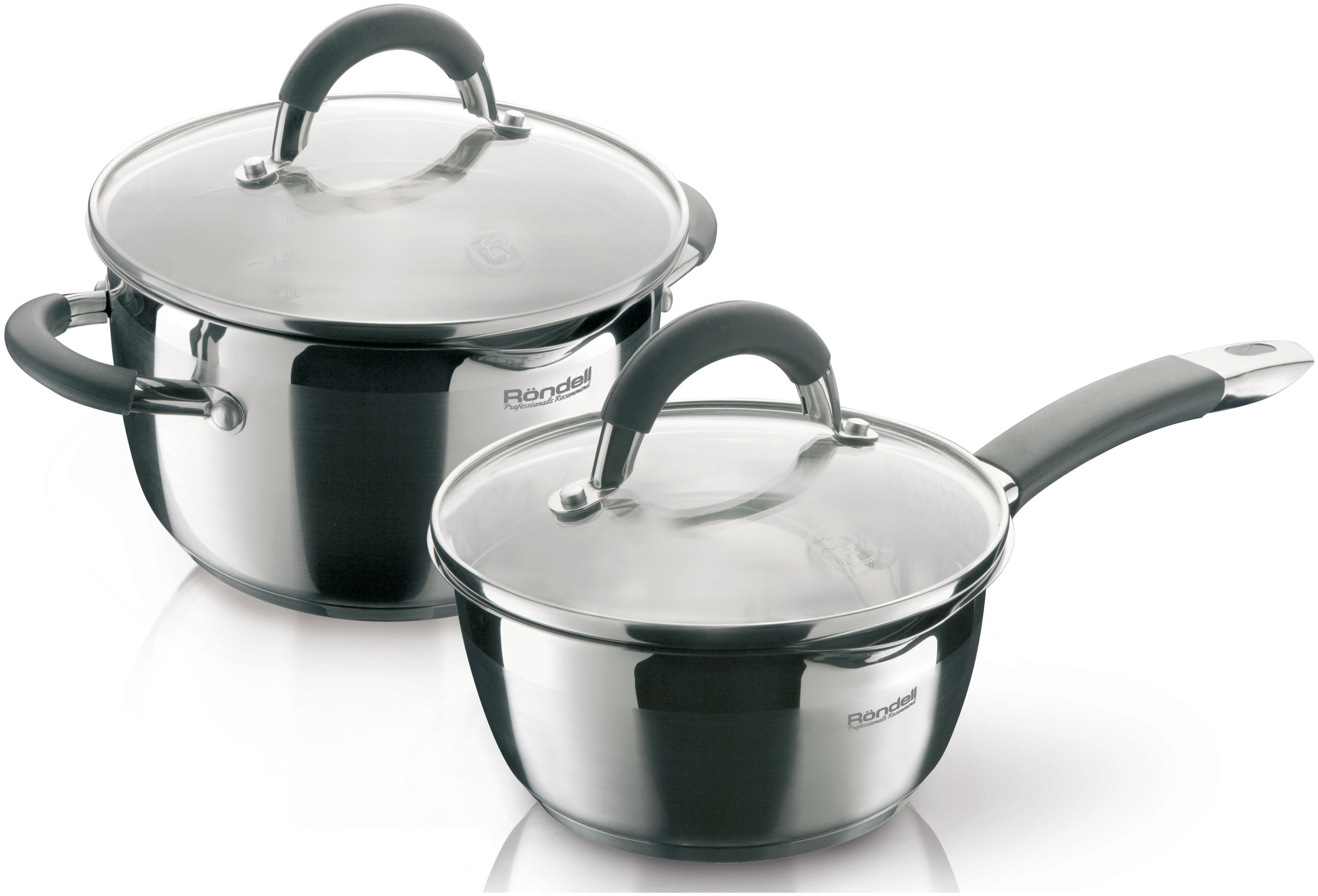 кастрюля 20 см (3,2 л), крышка 20 см, кастрюля 16 см (1,3 л), крышка 16 см, буклет с рецептами от шеф-повара