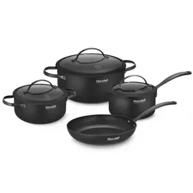 Особенности Материал: штампованный алюминий. Внутреннее покрытие: Xylan® Plus. Толщина стенок: 2,5 мм. Толщина дна: 2,5 мм. Изящные аксессуары из нерж. стали с черным невероятно долговечным покрытием PVD. Эргономичная форма ручек; силиконовый ободок крышки для бесшумного закрытия и предотвращения сколов.
