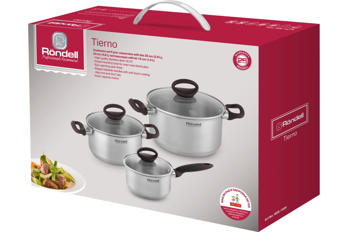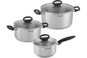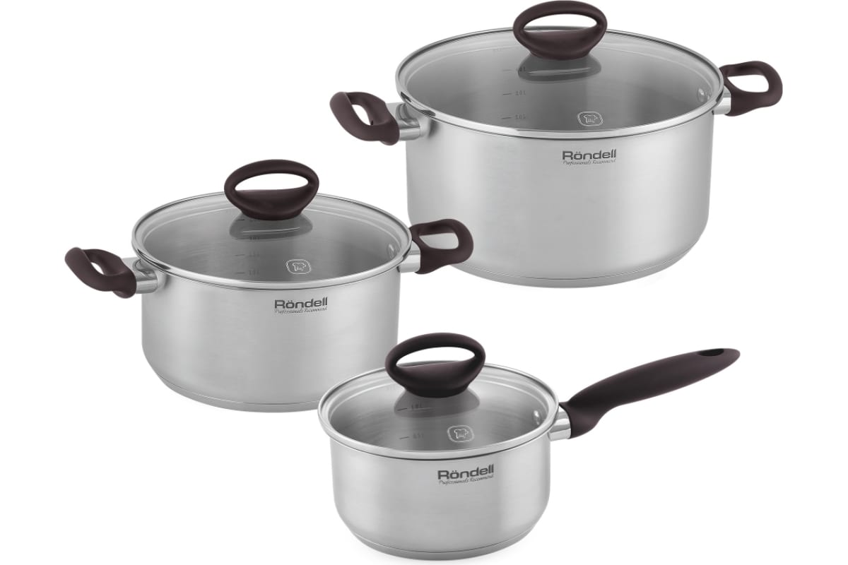 ковш с крышкой 16 см (1.4 л), кастрюли с крышками 20 см (2.8 л), 24 см (4.8 л)