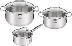 Состав комплекта: Кастрюля 24 см+крышка, Кастрюля 20 см+крышка, Ковш 16 см+крышка