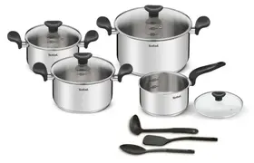 Прочие особенности и свойства: С Tefal Primary вам не придется беспокоиться о результате – с этим набором посуды любое блюдо получится невероятно вкусным, а процесс приготовления станет простым и приятным. Осваивайте новые рецепты благодаря эргономичному дизайну: на внутренней поверхности стенки расположена удобная мерная шкала, края кастрюль оснащены носиками для слива жидкости без брызг, а элегантная стеклянная крышка с паровыпуском позволяет наблюдать за процессом и сохраняет сочность каждого блюда.