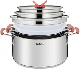 Описание: OPTI'Space разработан в универсальном дизайне из высококачественной нержавеющей стали. Дно каждой ёмкости усилено специальными дисками, противостоящими деформации. Имеется чёткая градуированная шкала внутри. Набор не займёт много места в шкафу. Просто сложите кастрюли одну в другую.