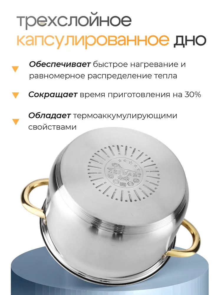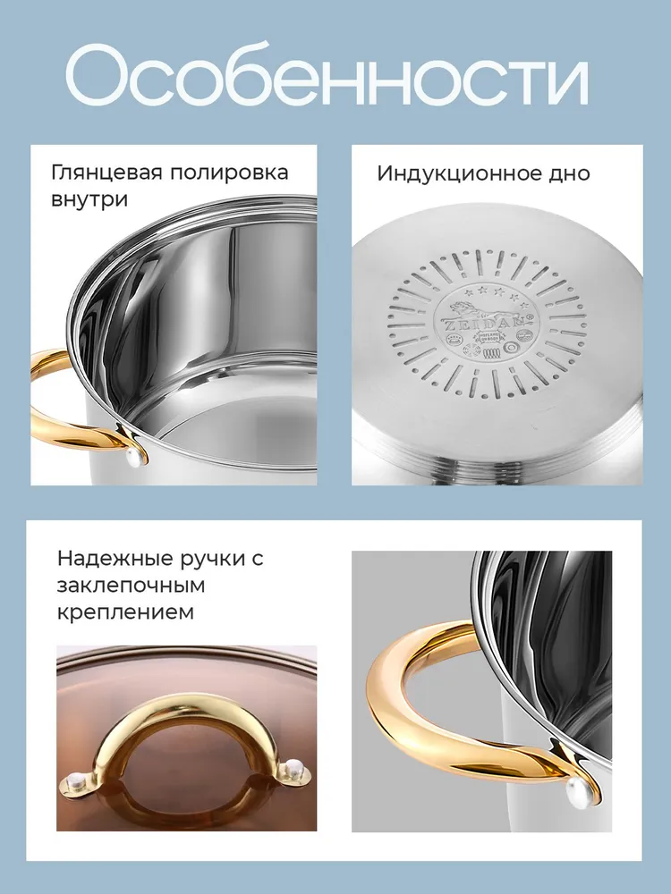 Особенности посуды: Двойные стенки, Крышка в комплекте, Мерные деления, Ненагревающиеся ручки, Можно мыть в посудомойке, Жаропрочная, С толстым дном, Профессиональная посуда