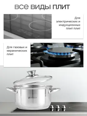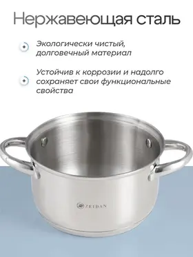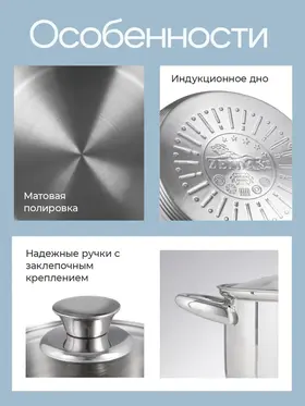 Особенности посуды: Двойные стенки, Крышка в комплекте, Мерные деления, Ненагревающиеся ручки, Можно мыть в посудомойке, Жаропрочная, С толстым дном, Профессиональная посуда