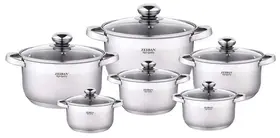 материал крышек: стекло; материал ручек: сталь; многослойное дно; диаметр кастрюль: 16 см, 18 см, 20 см, 22 см, 24 см, 26 см