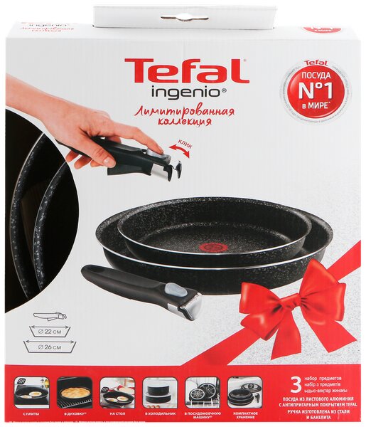 Глубокая сковорода 24 см – 2,5 л; Сковорода 26 см – 2,5 л; Съемная ручка
