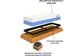 Двусторонний точильный камень для заточки ножей URM водный с силиконовым держателем, на подставке D01498 предназначен для заточки лезвий.