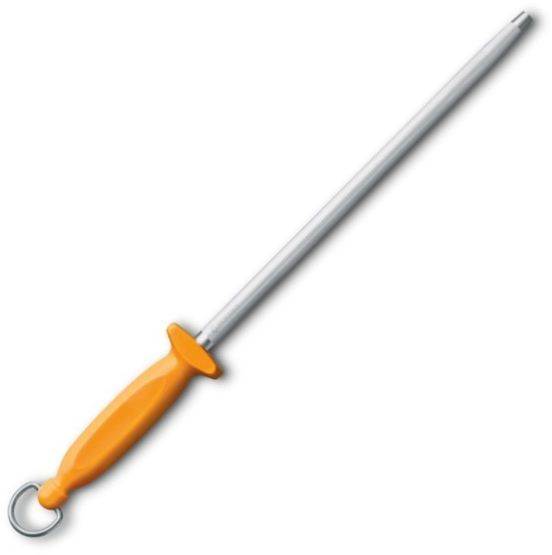 Мусат мясника VICTORINOX SWIBO Butcher Sharpening Steel обладает привлекательным дизайном и имеет круглую форму стержня со средней и мелкой насечкой. Мусат отличает легкость в применении, прочность и долговечность. Эргономичная форма ярко-жёлтой рукояти еще больше повышает удобство использования.