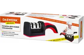 Точилка для ножей DASWERK – это отличный инструмент для заточки ножей (универсальных, столовых, поварских, овощных, охотничьих, складных, рыбацких, туристических).