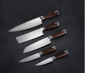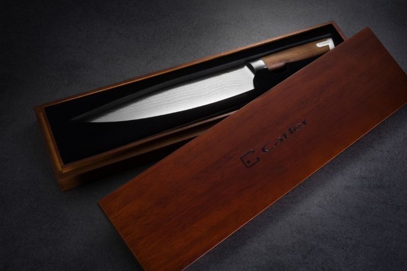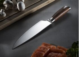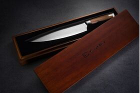 Очень прочный и острый нож идеально подходит для нарезки мяса, рыбы и овощей.