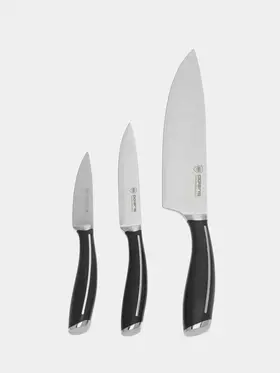 Поварской нож - лезвие 20 см., Нож кухонный универсальный – лезвие 12,5 см, Овощной нож для чистки и нарезки овощей и фруктов – лезвие 9 см