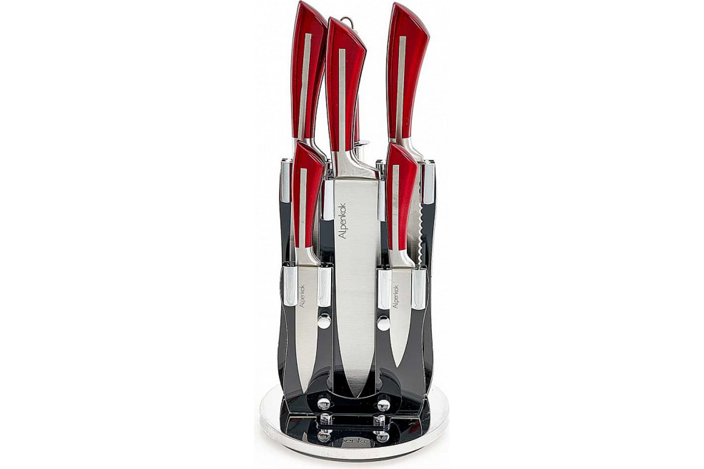 Набор ножей Alpenkok AK-2095 на акриловой подставке, предназначен для использования на кухне.