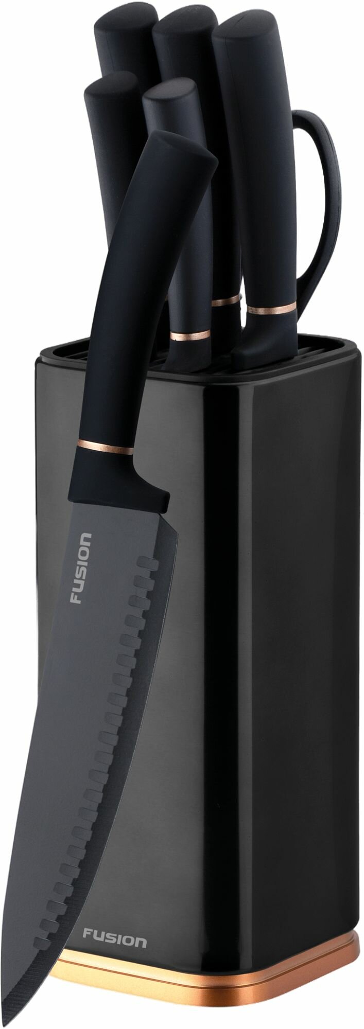 В дополнении к ножам - подставка для бережного хранения ножей без соприкосновения лезвий друг к другу.